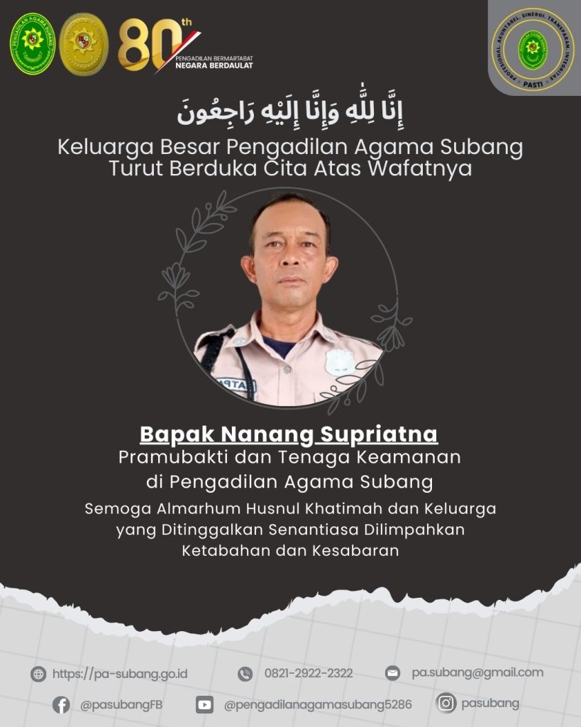 Keluarga Besar Pengadilan Agama Subang Turut Berduka Cita Atas Wafatnya Bapak Nanang Supriatna Pramubakti dan Tenaga Keamanan di Pengadilan Agama Subang