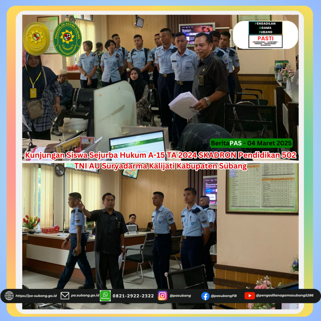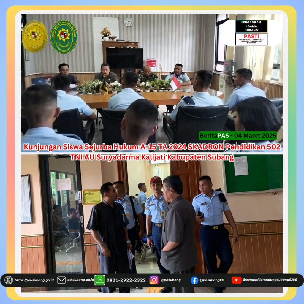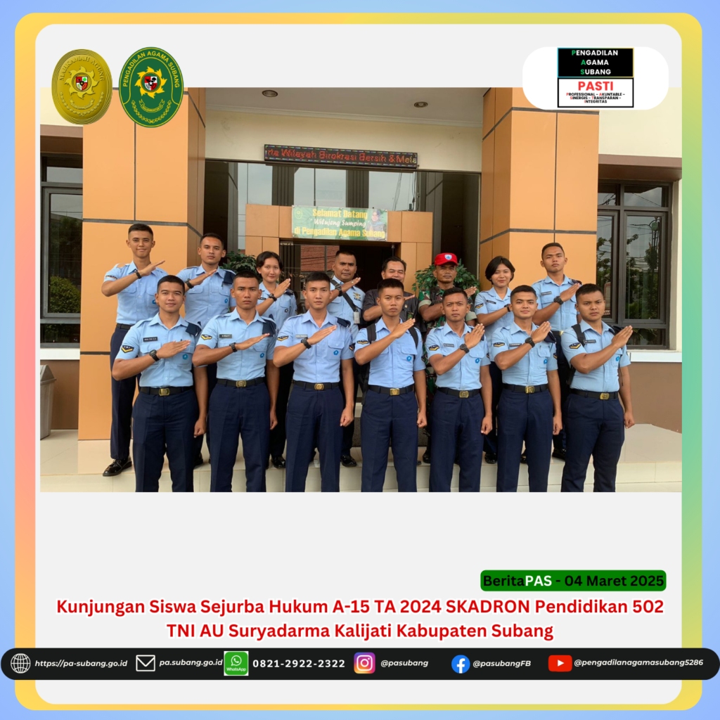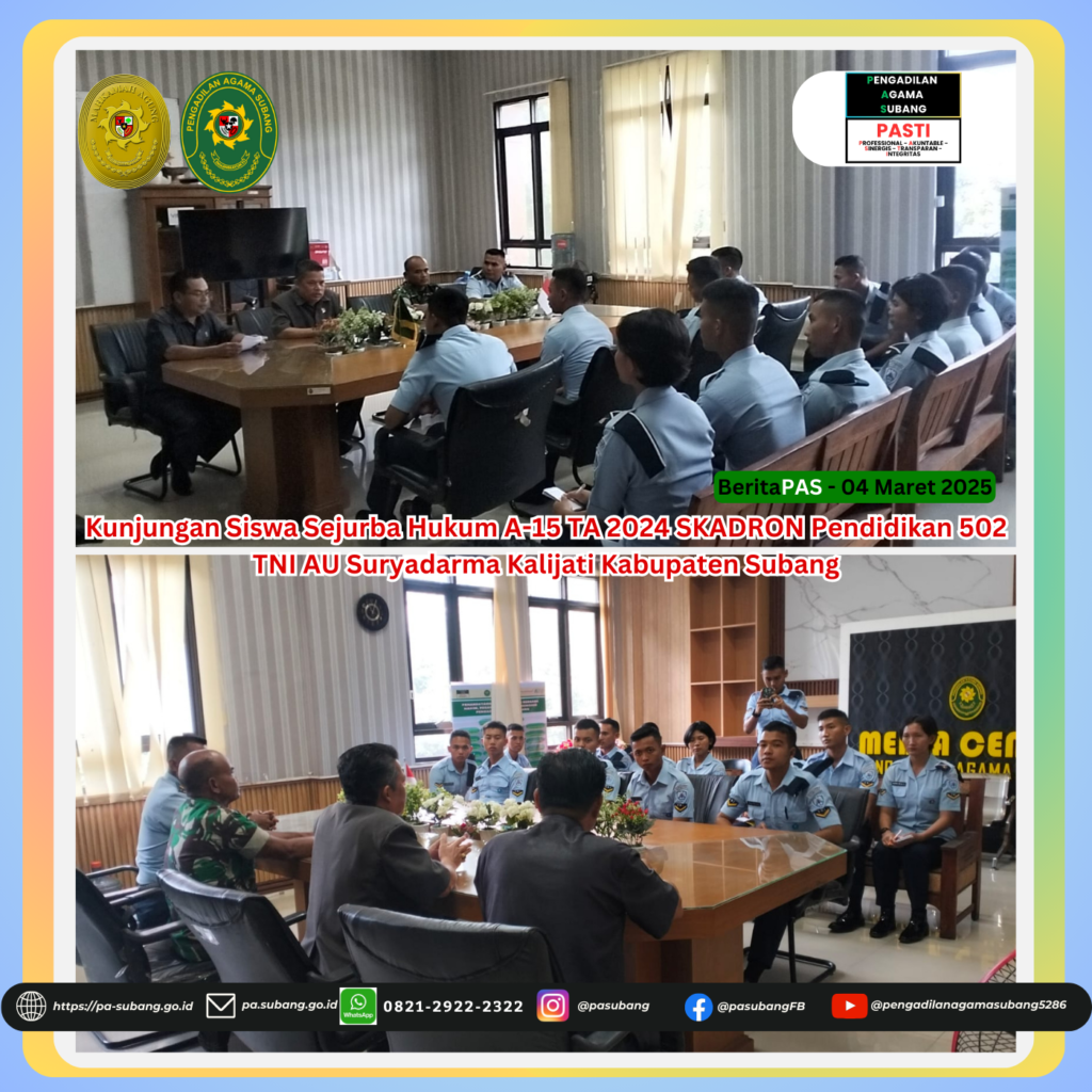 Kunjungan Siswa Sejurba Hukum A-15 TA 2024 SKADRON Pendidikan 502 TNI AU Suryadarma Kalijati Kabupaten Subang di Pengadilan Agama Subang
