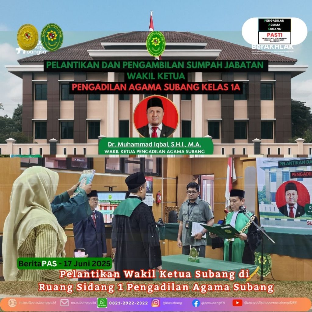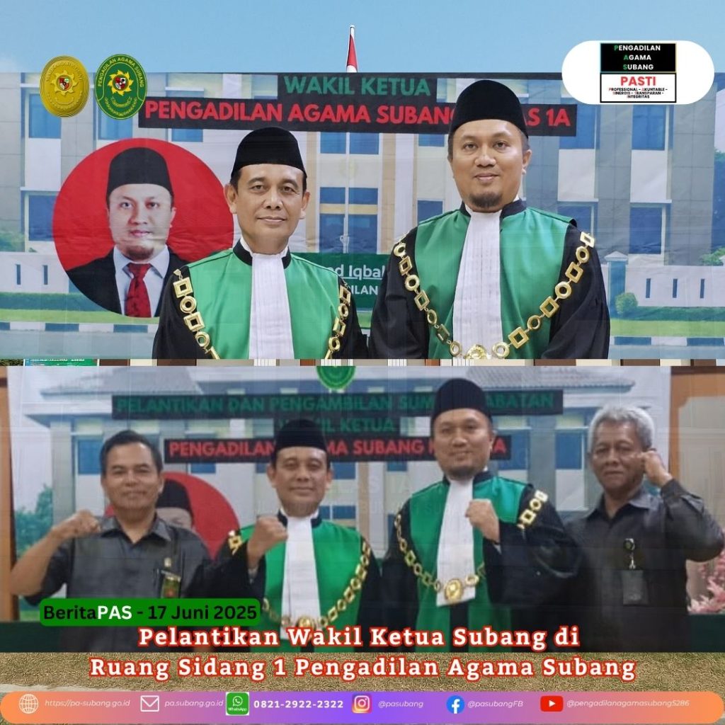 PELANTIKAN DAN PENGAMBILAN SUMPAH JABATAN WAKIL KETUA PENGADILAN AGAMA SUBANG KELAS 1A