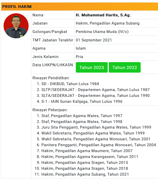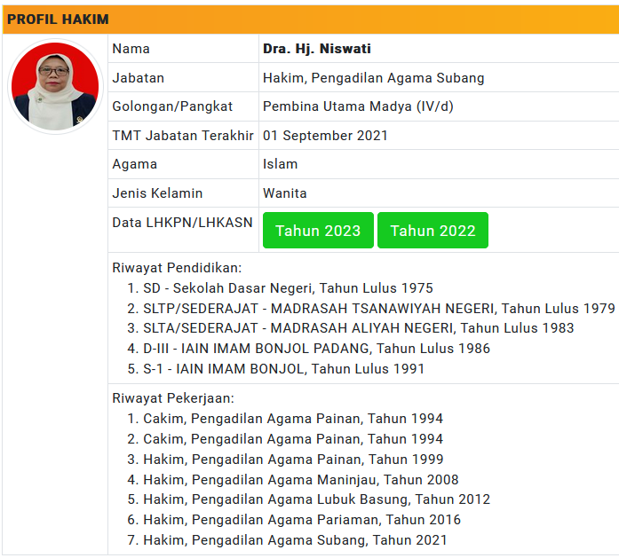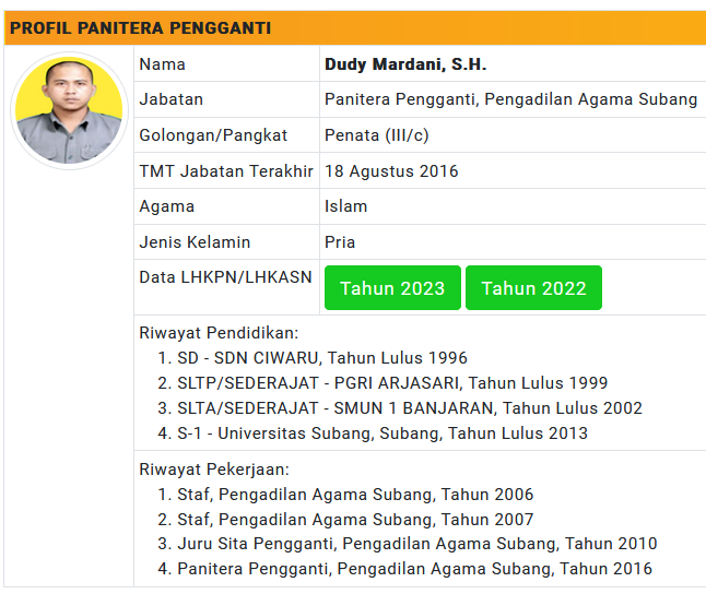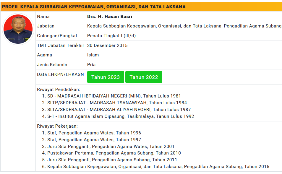 PIMPINAN, HAKIM DAN PEGAWAI PENGADILAN AGAMA SUBANG (DARI APLIKASI SIMTEPA)