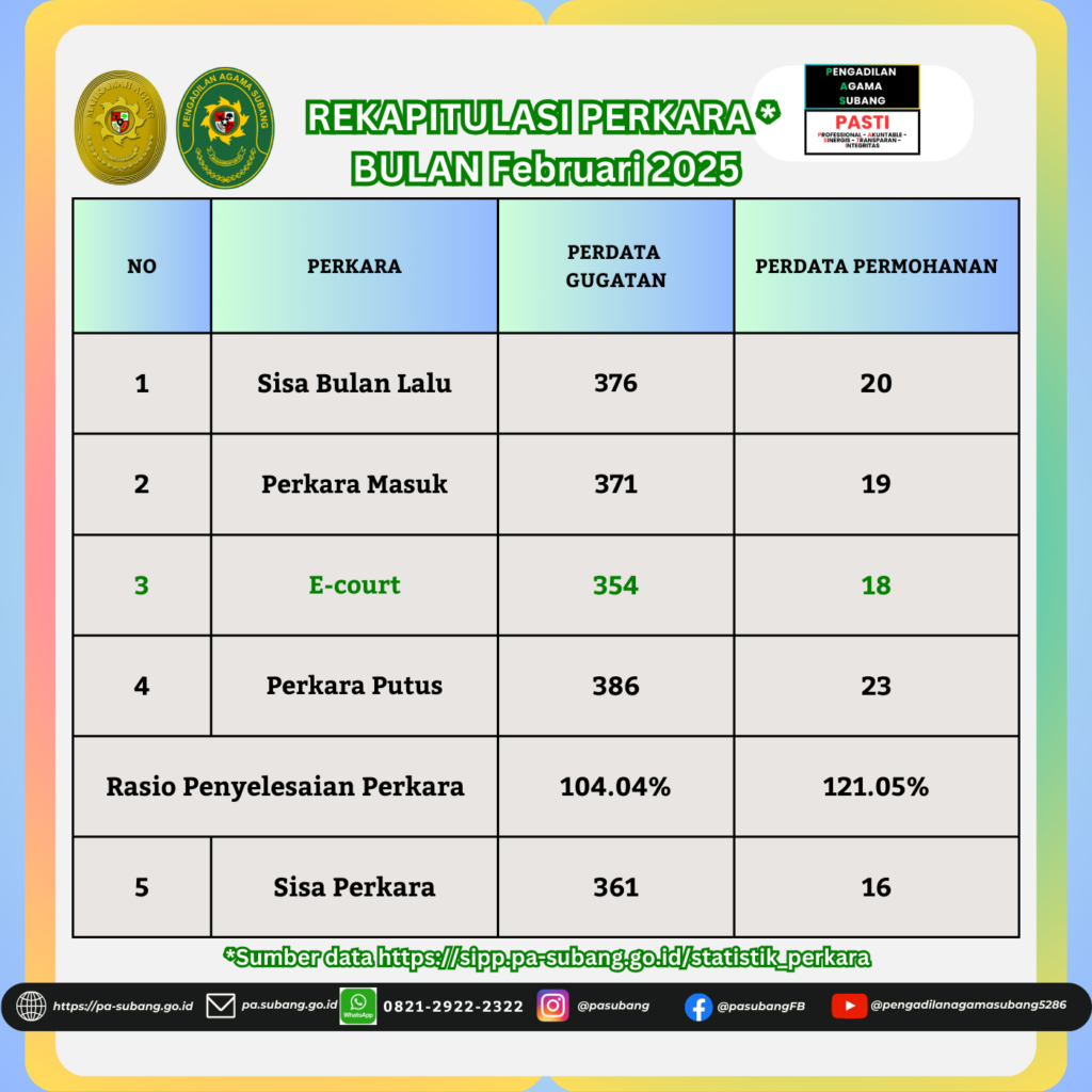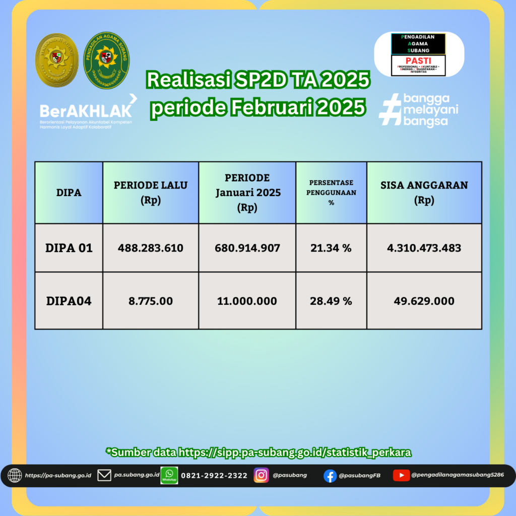 REKAPITULASI PERKARA BULAN Februari 2025 & Realisasi SP2D TA 2025 DIPA 01 & DIPA 04 periode Februari 2025