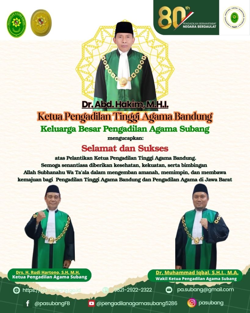 Selamat dan Sukses Ketua PTA Bandung Dr. Abd. Hakim, M.H.I. atas Pelantikan Ketua Pengadilan Tinggi Agama Bandung.