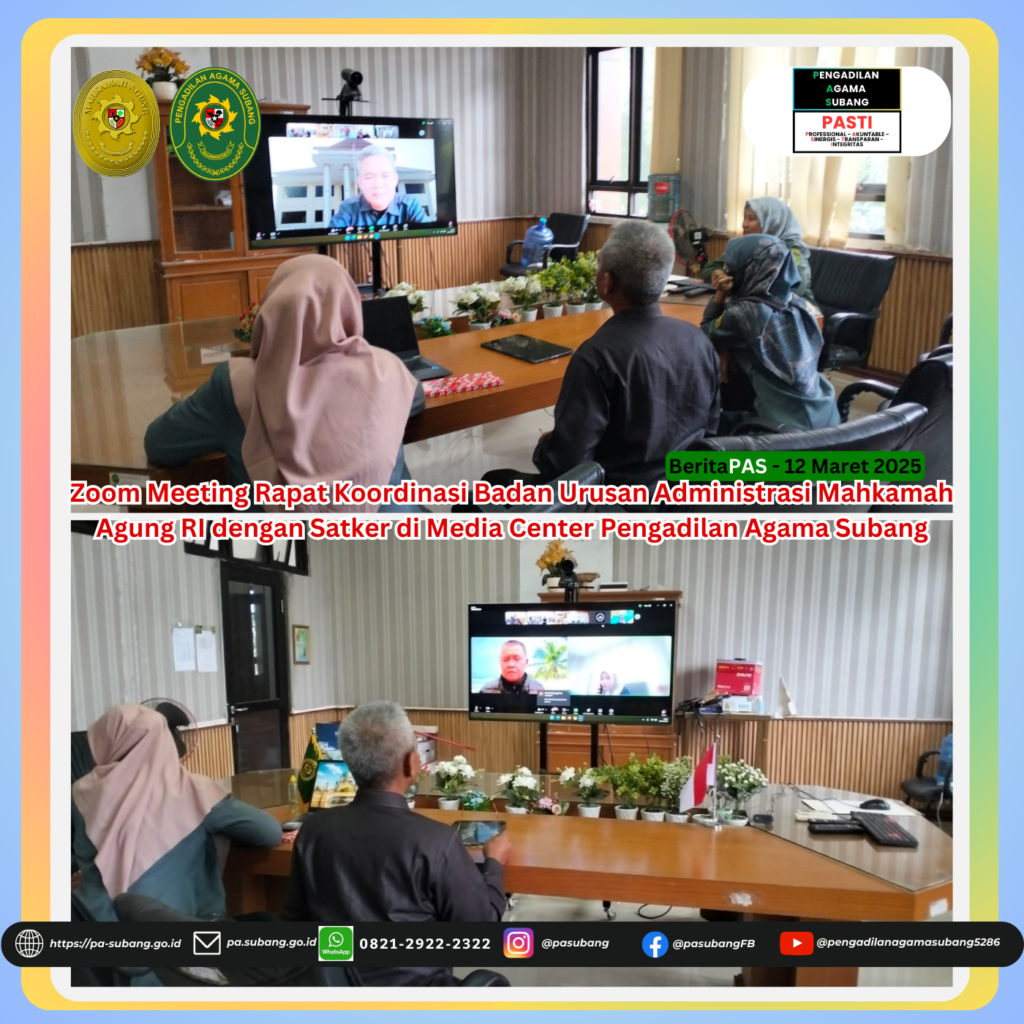 Zoom Meeting Rapat Koordinasi Badan Urusan Administrasi Mahkamah Agung RI dengan Satker Mahkamah Agung RI di Media Center Pengadilan Agama Subang